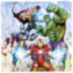 20 servetten met een leuke afbeelding van de Avengers-helden. Erg leuk om de tafel te dekken voor het kinderfeestje met een superheldenthema. Combineer ze met gerelateerde items uit hetzelfde thema voor een stijlvolle tafelaankleding.