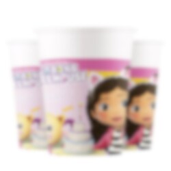 8 bekers met een schattige afbeelding van Gabby's Dollhouse. De bekers zijn ongeveer 10 cm hoog en hebben een inhoud van circa 200 ml.