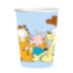 8 papieren bekers met busige afbeeldingen van Garfield. De bekers zijn ongeveer 10 cm hoog en bevatten ongeveer 200 ml - perfect om drankjes te serveren op een Kinderfeestje met een humoristische touch!