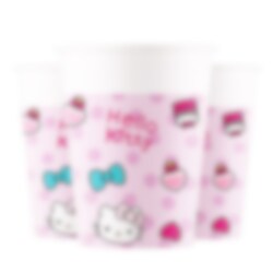 8 papieren bekers met een mooi afbeelding van Hello Kitty en andere kleine leuke details. Zet deze neer met bijbehorende bordjes en servetten voor een stijlvol geheel.