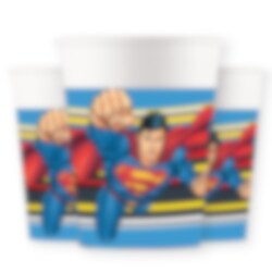 8 papieren bekers met afbeeldingen van de superheld Superman. Perfect wanneer je een leuke tafelschikking wilt maken op een Kinderfeestje met superheldenthema.