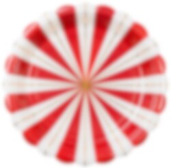 8 st. rood- en witgestreepte luxe bordjes met goudfolie strepen. De bordjes hebben een diameter van 19,5 cm en zijn gemaakt van papier.