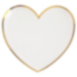 10 hartvormige bordjes in het wit met goudgefolieerde randen. Supermooi bordjes om te serveren op je feestje, babyshower of doop. De bordjes zijn ongeveer 22,5 x 20 cm groot.