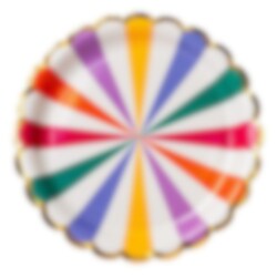 8 bordjes in mooi kleuren die zijn versierd met goudfolie randen. De bordjes hebben een diameter van 23 cm en zijn gemaakt van papier. Nodig je vrienden uit voor een leuk kinderfeestje.