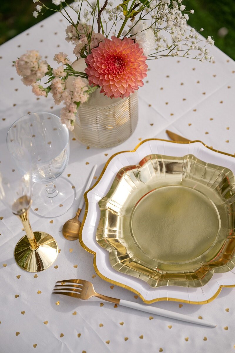 Creëer een stijlvolle tafelsetting met deze goudfolie borden die perfect zijn voor verjaardagen, doopfeesten, babyshowers, Nieuwjaar, bruiloften en andere feestelijke gelegenheden. De glanzende goudkleur geeft de tafelsetting een elegante uitstraling en maakt het gemakkelijk om de hele tafel met weinig moeite te verfraaien.