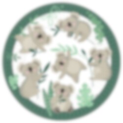 8 papieren bordjes in groen en wit met schattige afbeeldingen van koala's. Perfect om toe te voegen aan de tafelaankleding voor je dieren-geïnspireerde kinderfeestje. De bordjes hebben een diameter van ongeveer 23 cm.