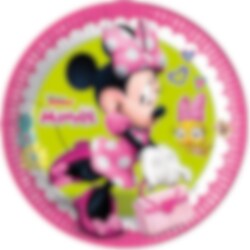 8 schattige papieren bordjes met afbeeldingen van Minnie Mouse. De bordjes hebben een diameter van ongeveer 23 cm.