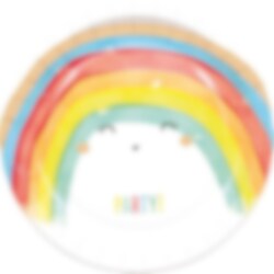 8 witte papieren bordjes met een motief van een lachend gezicht in een regenboog. Perfect om de tafel te dekken voor het kinderfeestje met een regenboogthema. Je kunt de bordjes ook combineren met onze andere accessoires uit het Rainbow Party thema.