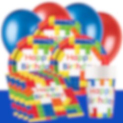 Maak er een kleurrijk bouwstenen verjaardag van vol plezier en fantasie! Met ons bouwstenen-feestpakket organiseer je in een handomdraai een vrolijk verjaardagsfeestje waarin alles perfect bij elkaar past. De borden, papieren bekers en servetten hebben afbeeldingen van bouwstenen met de tekst Happy Birthday, en de bijpassende ballonnen en het blauwe plastic tafelkleed maken de feesttafel helemaal af.