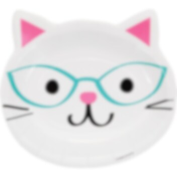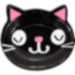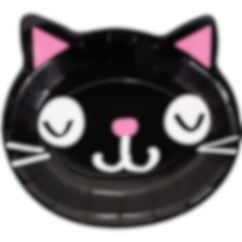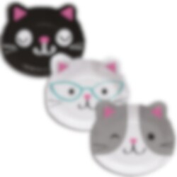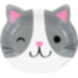 8 papieren bordjes in de vorm van kattenkoppen, beschikbaar in drie verschillende uitvoeringen. Stijlvol om op te nemen in de tafelaankleding voor het katten kinderfeestje. De bordjes zijn ongeveer 22 x 20 cm groot.