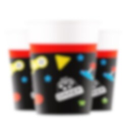 8 papieren bekers met coole game-afbeeldingen. De bekers zijn ongeveer 10 cm hoog en hebben een inhoud van ongeveer 200 ml. Perfect voor een gaming-thema kinderfeestje!