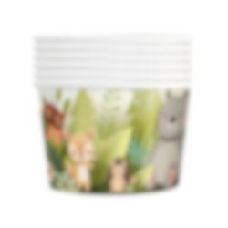 6 kleine ijsbekers in mooie kleuren met schattige afbeeldingen van verschillende bosdieren. De bekers zijn perfect om ijs, snoep, snacks of andere lekkernijen in te serveren. Ze hebben een inhoud van 150 ml en een afmeting van 6 x 7 cm. Gemaakt van karton.