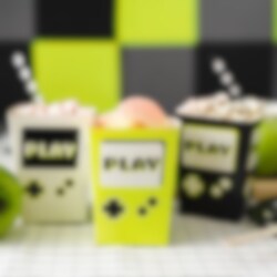 Maak het kinderfeestje nog spannender met deze stoere snackbakjes in gaming-thema. Elke verpakking bevat zes bakjes in drie verschillende modellen, perfect om snacks, snoepjes of kleine verrassingen aan je gasten te serveren. De afmetingen van de bakjes zijn 7 x 7 x 12 cm. Gemaakt van papier.