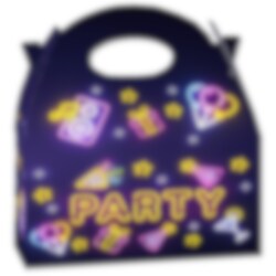 Laat de gasten de discovibe mee naar huis nemen met deze neon-geïnspireerde feestbox! Perfect om te vullen met snoep en kleine verrassingen. Gemaakt van karton, eenvoudig te monteren en heeft de afmetingen 20 x 16 cm. Verkocht per stuk.