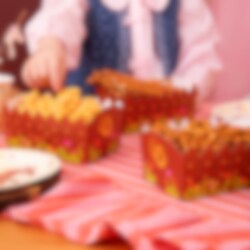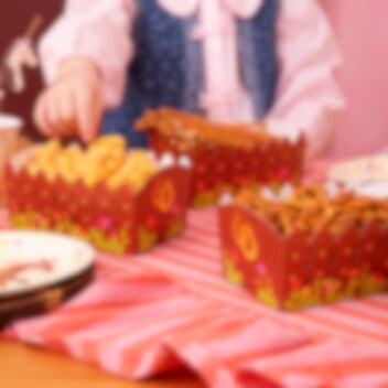 Breng een vleugje boerderijfeest naar de tafel met deze schattige snackboxen met hekwerkdesign. Versierd met hoefijzers, bloemen en landelijke details zijn ze ideaal voor chips, popcorn of stukjes fruit tijdens een paardenfeestje. De dozen zijn gemaakt van karton en hebben een formaat van 15 x 10 x 7,5 cm – handig én decoratief.