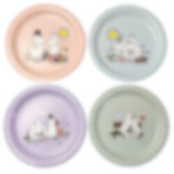 8 bordjes met betoverende afbeeldingen van de Moomins, geïnspireerd op Tove Janssons tijdloze verhalen over het leven in de Moominvallei. Deze prachtige bordjes nemen de feestgasten mee op een betoverend avontuur met Moomin, Snorkmeisje en hun vrienden. Elke verpakking bevat 2 bordjes van elk ontwerp.