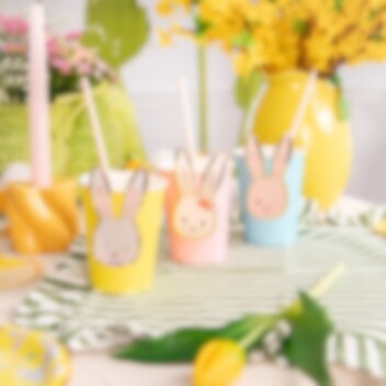 Maak het paasfeest extra feestelijk met deze schattige papieren bekers, versierd met charmante paashazen in verschillende kleuren. De uitstekende konijnenoren zorgen voor een speels en uniek ontwerp, waardoor drinkmomenten nog leuker worden.