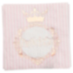 20 servetten in witte en roze strepen met een heerlijk motief van een prinsessenkroon in luxe roségoudfolie en met andere fijne details. Combineer de servetten gerust met bordjes, bekertjes en andere accessoires in hetzelfde prinsessenthema.