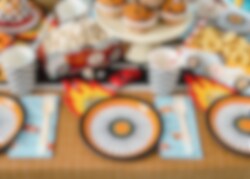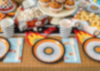 6 stuks ontzettend coole bordjes die een autoband voor een racewagen voorstellen met een vuurvlam in 3D. Met deze kun je een levendig kinderfeestje opzetten en stemmen met andere mooie accessoires van het thema.