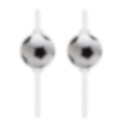 4 rietjes met afbeeldingen van voetballen. Een leuk accessoire om op tafel te zetten tijdens het kinderfeestje met voetbalthema. De rietjes zijn ongeveer 22 cm lang en de afbeeldingen hebben een diameter van ongeveer 7 cm.