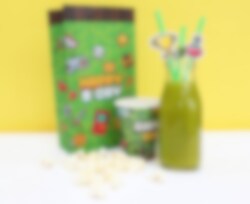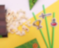8 groene kartonnen rietjes met grappige spelgerelateerde motieven. De rietjes zijn 19 cm lang.