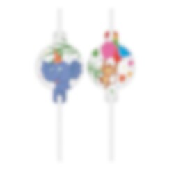 4 kartonnen rietjes met motieven van verschillende schattige dieren. De rietjes zijn ongeveer 21 cm lang en de motieven hebben een diameter van ongeveer 6,5 cm.