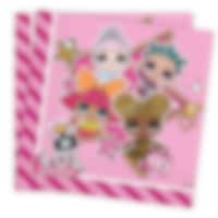 20 servetten in roze tinten en met aan beide zijden motieven van Queen Bee, Glitter Queen, Cosmic Queen en Crystal Queen uit de populaire LOL Surprise poppenserie. Een mooie aanvulling op de gedekte tafel voor je LOL Surprise kinderfeestje. De servetten hebben 2 lagen en zijn uitgevouwen 33 x 33 cm.