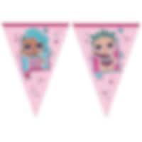 Indrukwekkende vaggenlijn van kunststof in schattige kleuren en met motieven van Cosmic Queen en Splash Queen van de LOL Surprise-groep The Glitterati. Een leuke decoratie om de kamer mee te decoreren als het tijd is voor een kinderfeestje. De slinger is ongeveer 2,3 meter lang en heeft aan beide kanten motieven.