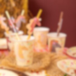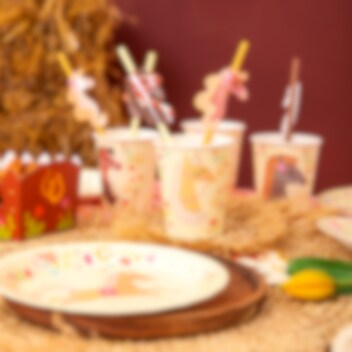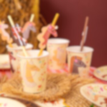 Laat de paarden zo het feestje binnen galopperen met deze leuke papieren rietjes met schattige paardenhoofden in verschillende kleuren. Een speels detail dat perfect past bij een kinderfeestje, paardenthema of picknick bij de manege.