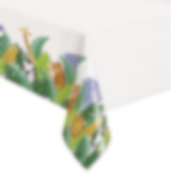 Stijlvol plastic tafelkleed met een witte basiskleur en schattige kleurrijke motieven van safaridieren in de jungle. Een leuke decoratie om te hebben als het tijd is om de tafel te dekken voor je junglefeest. Mis niet dat we nog andere leuke accessoires hebben om bij elkaar te matchen uit het safari thema.