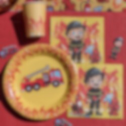 20 kleurrijke servetten met een vrolijk brandweerontwerp, klaar om in actie te komen bij elk plakkerig moment op het kinderfeestje. De servetten zijn 16,5 × 16,5 cm groot wanneer ze zijn uitgevouwen.