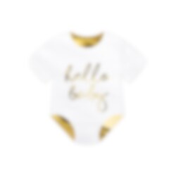 20 servetten in de vorm van witte babybody's met details van goudfolie en de tekst "Hello Baby". Een mooie aanvulling op de tafelaankleding voor de babyshower of doop. De servetten hebben 3 lagen en zijn uitgevouwen 33 x 33 cm.