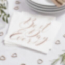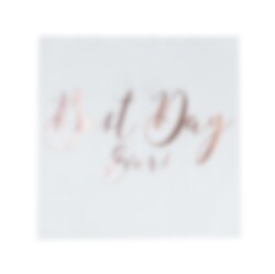 20 leuke witte servetten met aan een zijde de tekst "Best Day Ever" in roségoudfolie. Heb deze leuke servetten voor de babyshower, feest of party. De servetten hebben 2 lagen en zijn uitgevouwen 33 x 33 cm.