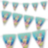 Kleurrijke vlaggenlijn van karton met magische SpongeBob-afbeeldingen. Een perfecte decoratie om de feestruimte om te toveren tot een betoverende onderwaterwereld vol vriendschap en plezier. De slinger is ongeveer 3 meter lang en elke wimpel is ongeveer 24,5 cm hoog.