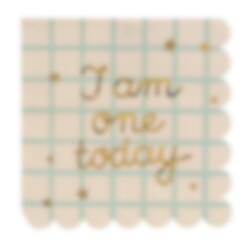 12 mooie servetten met de tekst "I am one today" in goudfolie, perfect voor het 1-jarige feestje met teddybeerthema. Met hun speelse kleuren zijn ze een schattige en leuke toevoeging aan de tafel. De servetten hebben 3 lagen en zijn 33 x 33 cm groot als ze zijn uitgevouwen.
