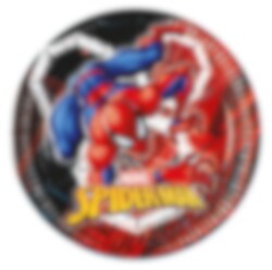 8 papieren bordjes in rood en zwart met afbeeldingen van de superheld Spider-Man. Een stoere toevoeging aan de feesttafel voor een Spider-Man-feestje.