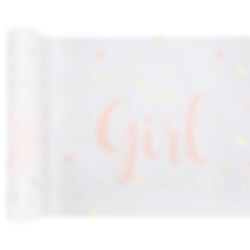 Een leuke tafelloper met de tekst Baby Girl en met schattige details zoals hartjes en stippen in roze en goud foiled kleuren. Perfect om de tafel mee te dekken als het tijd is om de aanstaande moeder te verrassen bij de babyshower of als het tijd is voor een 1-jarig kinderfeestje. Combineer gerust met onze leuke bekers, bordjes en servetten.