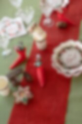 Glinsterende tafelloper in rood voor op tafel als het tijd is voor een feestje. De tafelloper is 28 breed en 3 meter lang en is gemaakt van polyester.