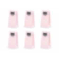6 roze papieren uitdeelzakjes met bijpassende stickers met afbeeldingen van zwarte katten. Vul de zakjes met snoep en een kleine verrassing om uit te delen aan je gasten tijdens het kinderfeestje.