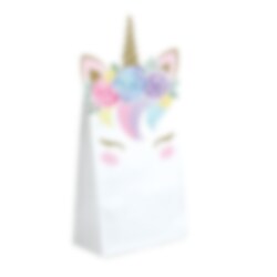 8 papieren uitdeelzakjes met afbeeldingen van eenhoorns in pastelkleuren. Vul de zakjes met lekkernijen en een leuke verrassing om uit te delen aan de gasten tijdens de babyshower. De uitdeelzakjes zijn ongeveer 11,5 x 20 cm groot.