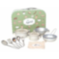Hier is alles wat de kleine kok mogelijk nodig heeft in de keuken. Met deze keukenset kan je kind zich lang vermaken. Een leuk speelset waar je het gereedschap ook kunt gebruiken om in echte potten te roeren. Laat je kind meehelpen om fantastische gerechten in de keuken te maken.