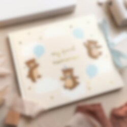 Een prachtig fotoalbum met een teddybeerthema, perfect om de allereerste herinneringen van het kind te bewaren! Het album is 28 x 25 cm groot en bevat 50 pagina's die je kunt vullen met foto's en herinneringen. Met de 21 bijgeleverde stickers kun je het album nog persoonlijker maken.