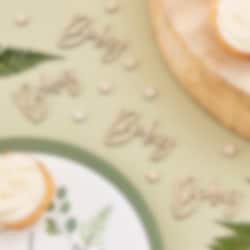 Verpakking met confetti in houtmateriaal uit het thema Botanical Baby. Versier hiermee de tafel als het tijd is voor babyshower of doop. De verpakking bevat ongeveer 14 gram.