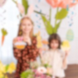 Elke decoratie is tussen de 14,5 en 21 cm groot, en de hele spiraal is 85 cm lang. Perfect om op te hangen aan het plafond, bij het raam of langs de muren voor een vrolijke en uitnodigende paasdecoratie.