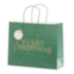 Elegante groene cadeautas met goudfolietekst en een feestelijke uitstraling. Perfect voor kerstcadeaus, kleine geschenken of als stijlvolle verpakking.