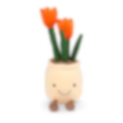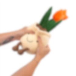 Deze tulpen hebben geen water of zonlicht nodig – alleen liefde en knuffels! Animigos Funky Friends Tulpen is een uniek en charmant knuffeldier dat een zachte bloempot combineert met drie prachtige stoffen tulpen. Perfect voor bloemenliefhebbers of als een speelse en bijzondere decoratie.