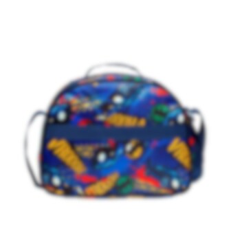 De lunchtas is 25,5 x 20 x 10 cm groot en heeft een groot vak met ritssluiting en een schouderband van 120 cm lang.