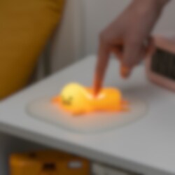 De lamp is 18 cm hoog en wordt ingeschakeld door op Gudetama's lichaam te drukken, dat zacht en flexibel is. Werkt op 3 AAA-batterijen (niet inbegrepen).