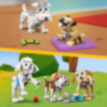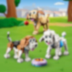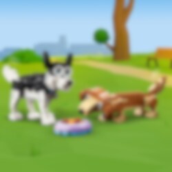 Dit is de ultieme bouwset voor hondenliefhebbers! Bouw een beagle, een poedel en een labrador voor leuke avonturen in het park met een bal en een riem. Vervolgens kun je ze ombouwen tot een speelse schnauzer en een mopshond of ze veranderen in een husky en een langharige teckel. Aan jou de keuze met deze schattige 3-in-1 set.