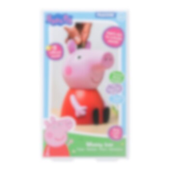 De spaarpot is 16 cm hoog en werkt op 2 AAA-batterijen (niet inbegrepen). Een schattig en interactief cadeautje voor echte Peppa-fans.